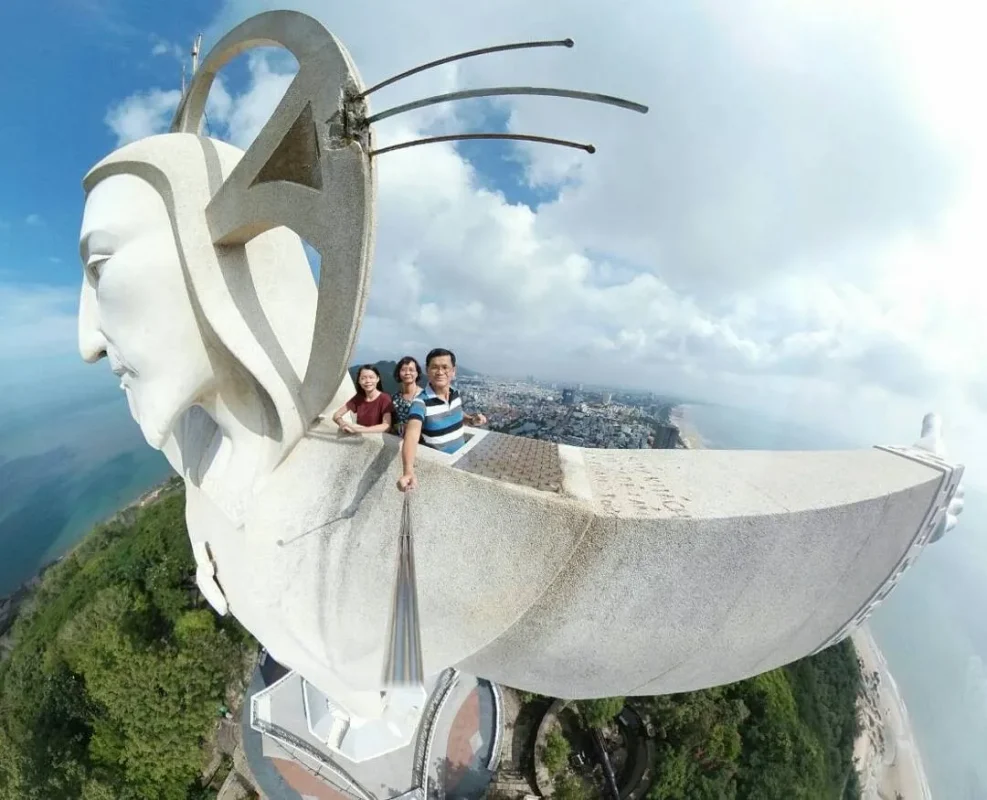 Khi lên đến đỉnh, sự uy nghi của bức tượng cao 32 mét sẽ khiến bạn choáng ngợp. Để lên được vai Chúa, bạn sẽ phải leo thêm 133 bậc thang xoắn ốc hẹp bên trong lòng tượng. Và phần thưởng là đây: từ ban công trên hai vai của Tượng, một bức tranh toàn cảnh Vũng Tàu 360 độ đẹp đến nghẹt thở sẽ hiện ra. Bạn có thể thấy rõ Mũi Nghinh Phong, Hòn Bà, Bãi Dứa và toàn bộ cung đường biển Bãi Sau uốn lượn. Đây là cảm giác chinh phục không thể nào quên.